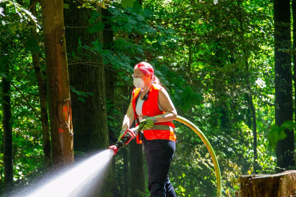 Mit einem Löschangriff von zwei Seiten gelang es den Einsatzkräften, die Ausbreitung der Flammen einzudämmen und das Feuer unter Kontrolle zu bringen. Dennoch brannten etwa 100 mal 200 Meter Waldfläche.