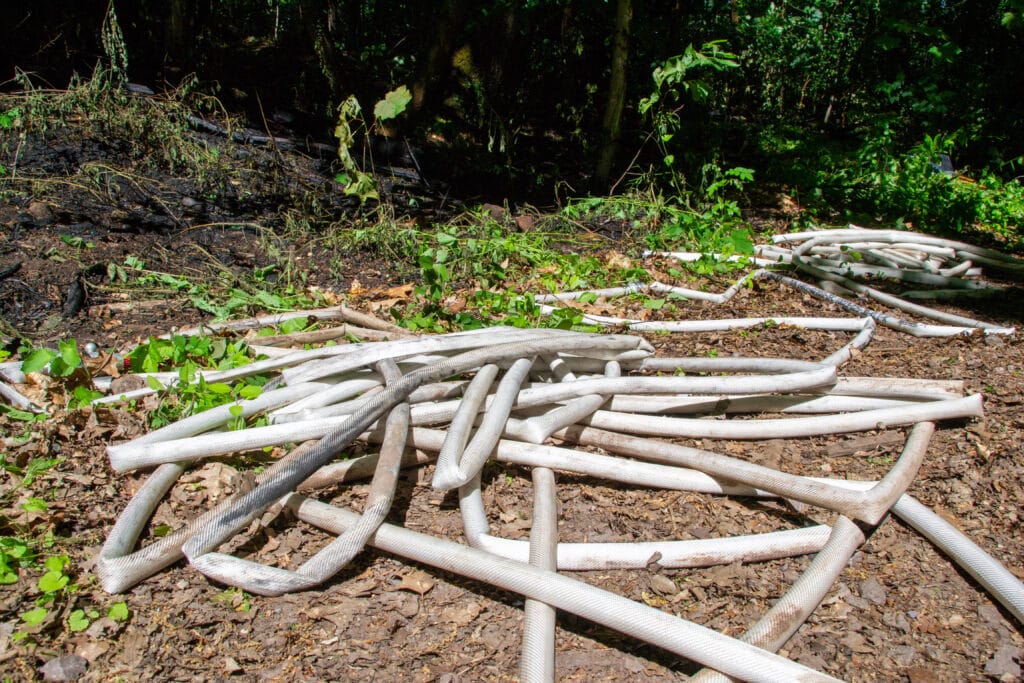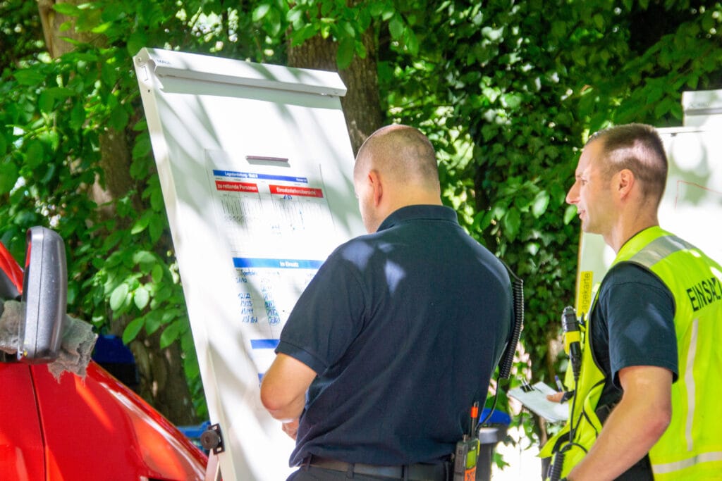 Rund 20 Einsatzfahrzeuge waren im Einsatz, darunter mehrere Lösch- und Tanklöschfahrzeuge zur direkten Brandbekämpfung sowie Logistikfahrzeuge, um Material an die Einsatzstelle zu bringen. Zur Koordination des Einsatzes wurde eine zentrale Einsatzleitung mittels zweier Einsatzleitwagen eingerichtet.